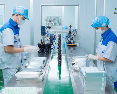 Quy trình sản xuất diễn ra tại nhà máy hiện đại đạt chuẩn CGMP của Bộ Y Tế. Từ khâu nghiên cứu, lựa chọn nguyên liệu đến sản xuất đều được giám sát chặt chẽ bởi đội ngũ chuyên gia giàu kinh nghiệm, đảm bảo sản phẩm luôn đạt chuẩn chất lượng cao nhất.