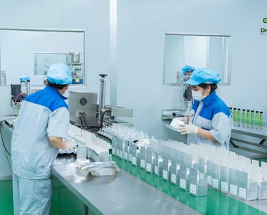 Quy trình sản xuất được thực hiện trong môi trường đạt chuẩn vệ sinh, có sự giám sát của đội ngũ chuyên gia và ứng dụng công nghệ tiên tiến, đảm bảo chất lượng đồng đều, phù hợp tiêu chuẩn của Bộ Y Tế.
