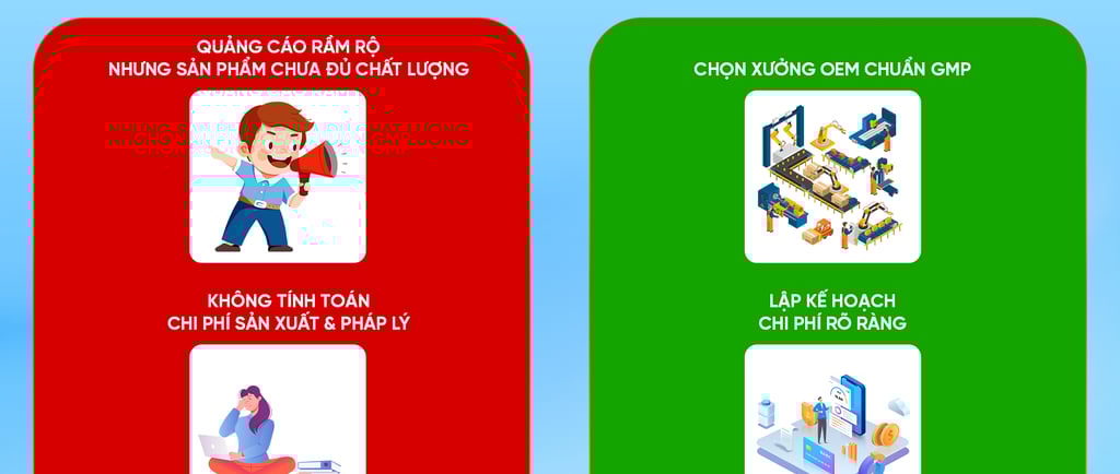 Không tính toán chi phí sản xuất & pháp lý: Nhiều người chỉ tập trung vào chi phí marketing mà quên đi các khoản đầu tư quan trọng khác như chi phí sản xuất, giấy tờ pháp lý, kiểm định chất lượng... Dẫn đến tình trạng thiếu hụt tài chính và rủi ro pháp lý về sau.